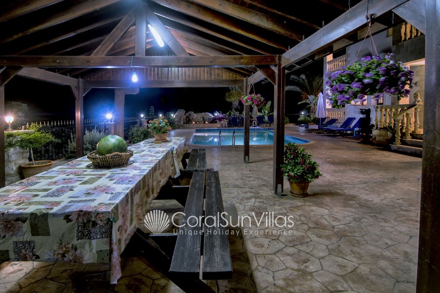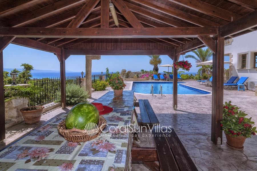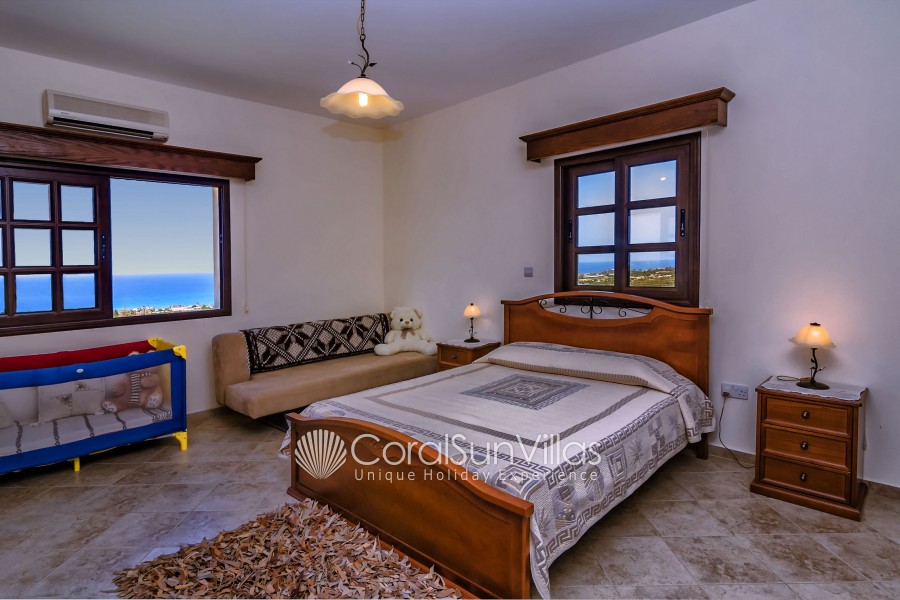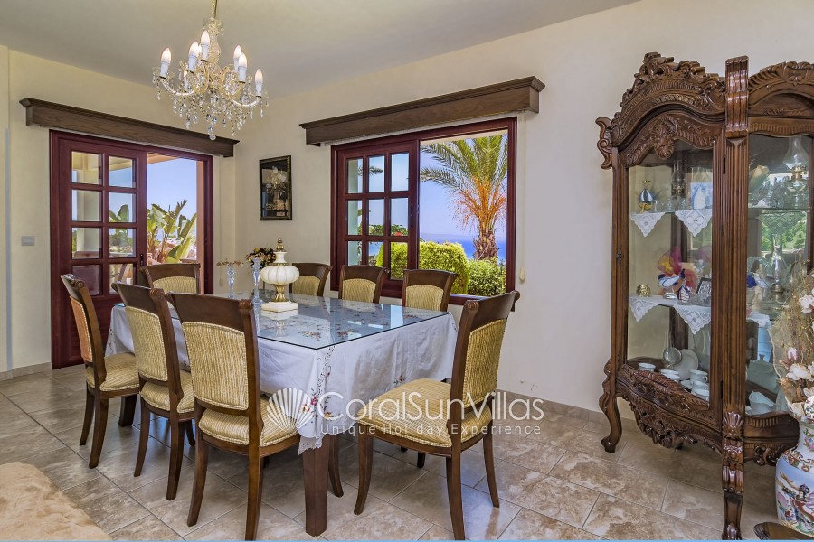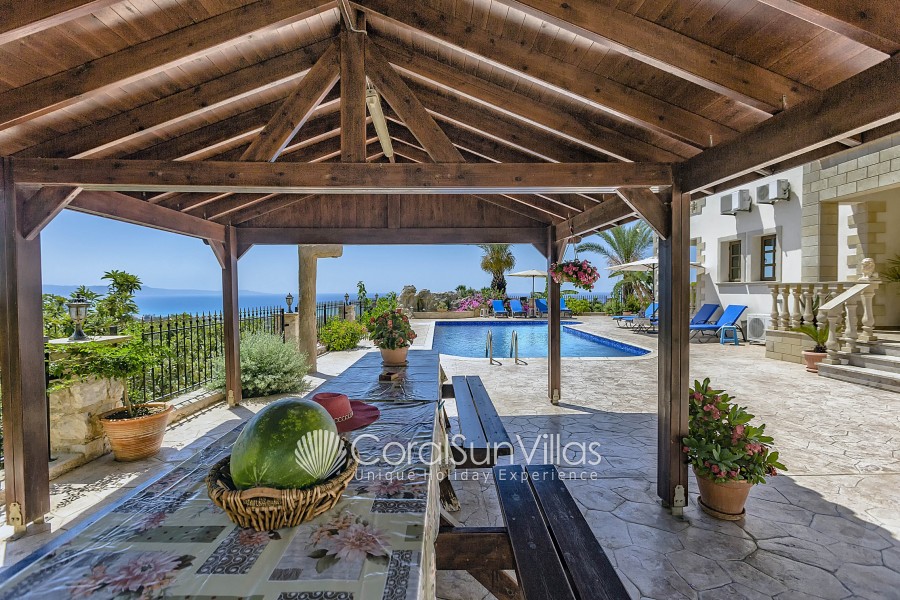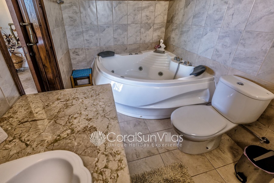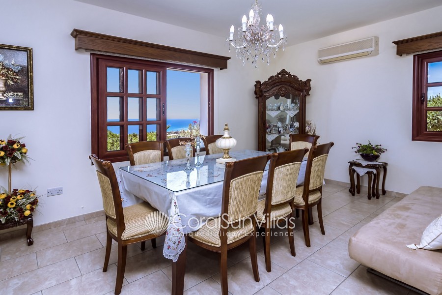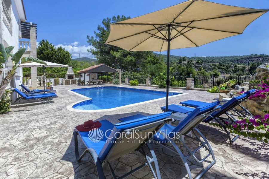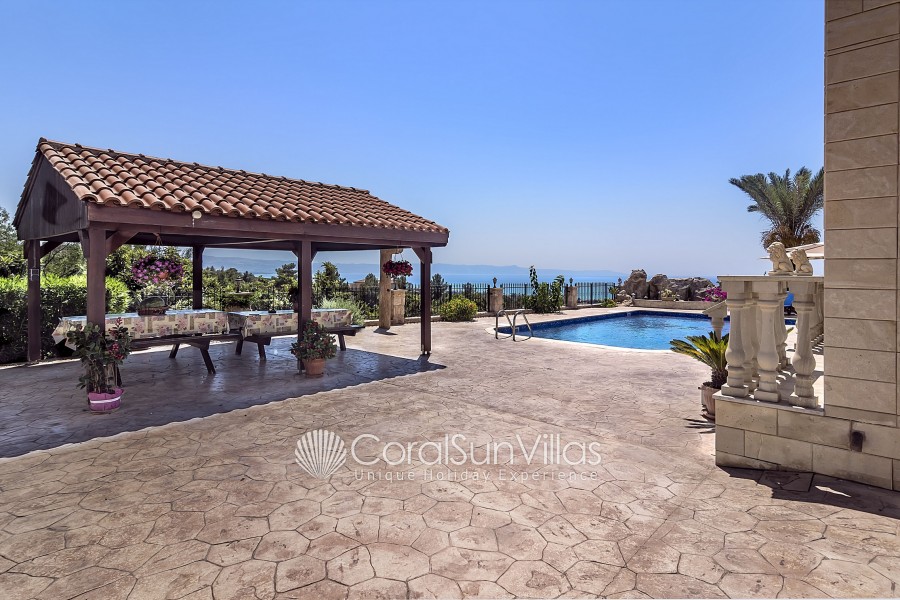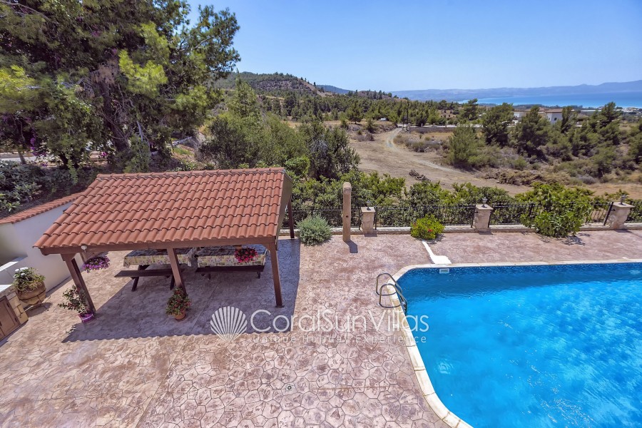 The Villa is a stunning villa and offers all round magnificent views of both the nearby coastline and sea and the equally nearby pine tree covered mountains. Enjoy the views from the pool area and from the verandas and balconies of this magnificent villa.