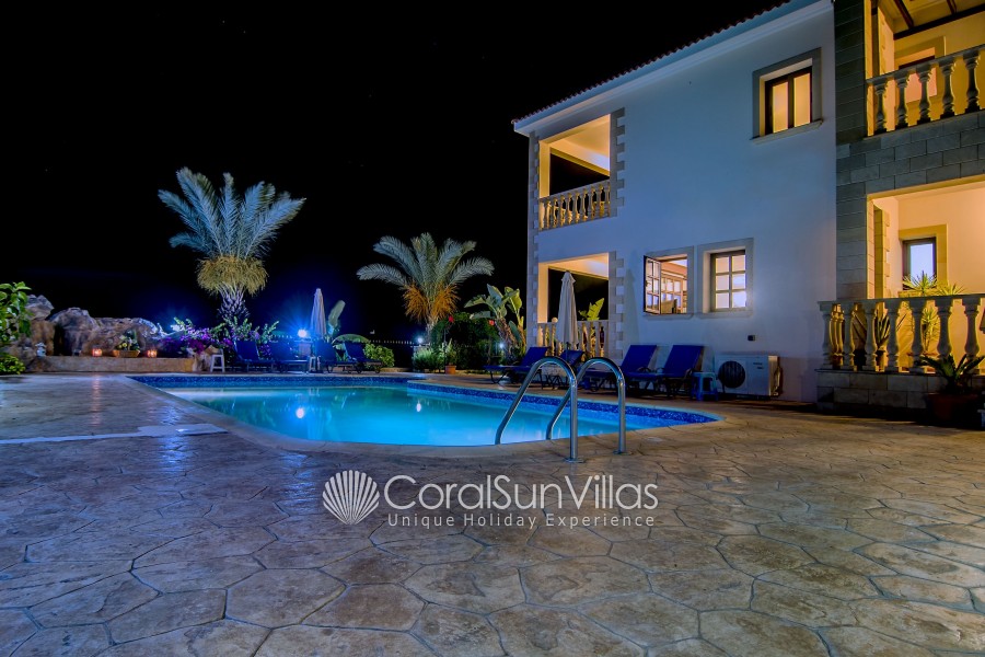 This fab secluded very private villa is in Polis area Cyprus and offers 4 bedrooms and 4 bathrooms, (sleeps 10) and has a large private pool. Breathtaking views of the countryside leading up to the coastline is found in a short drive from Polis, Latchi and the Akamas Peninsula. The villa is finished to the highest quality both inside and out.