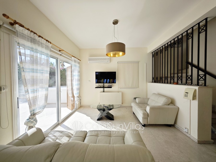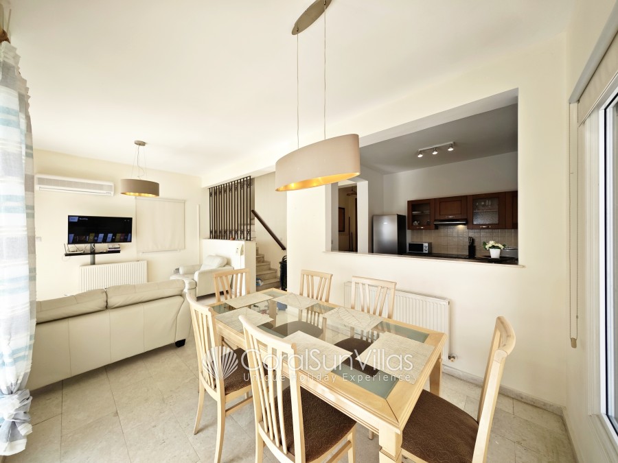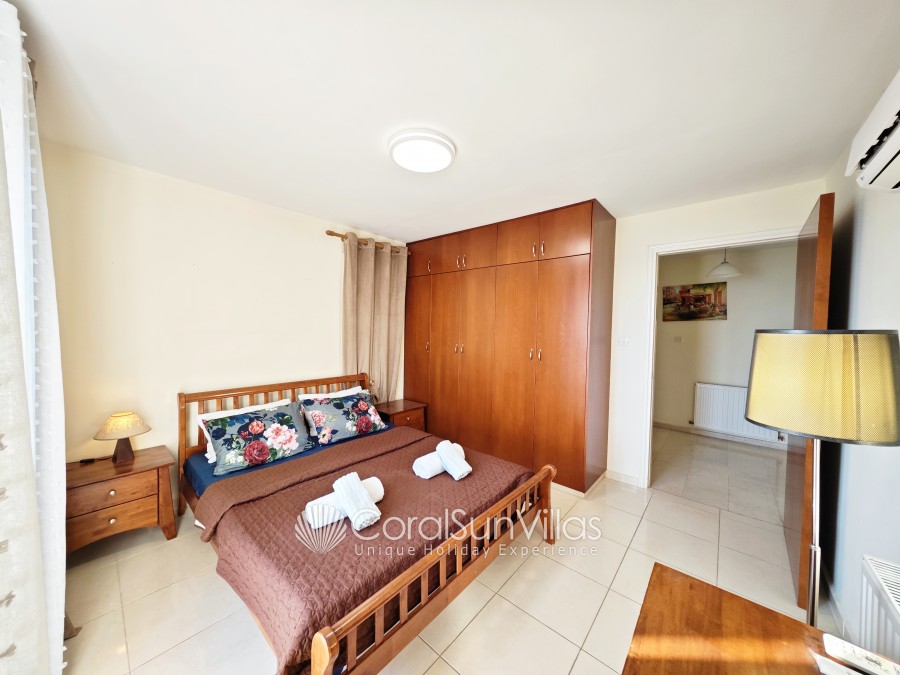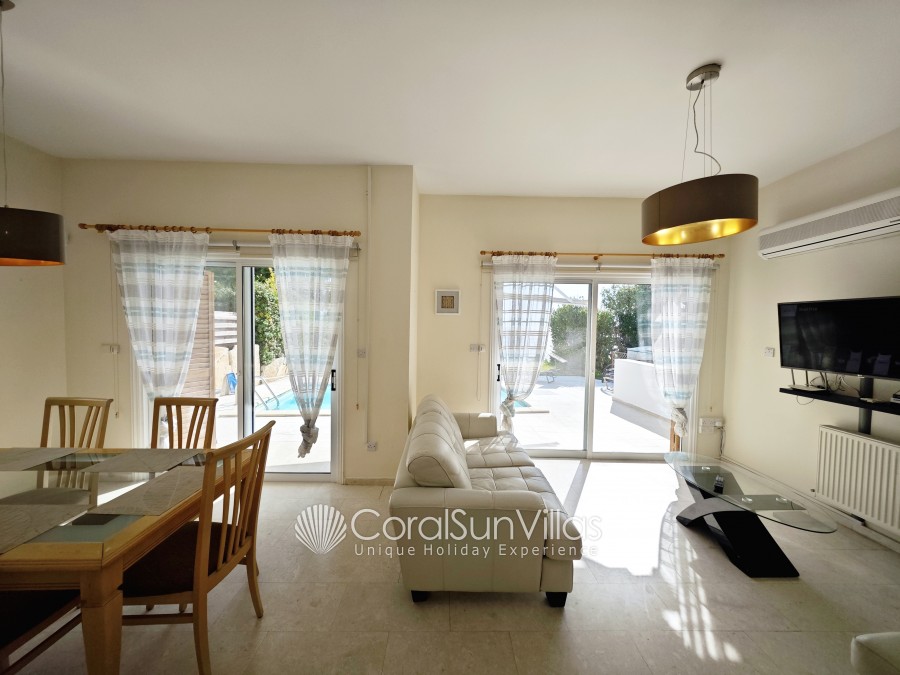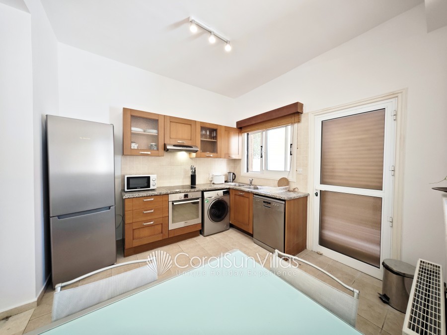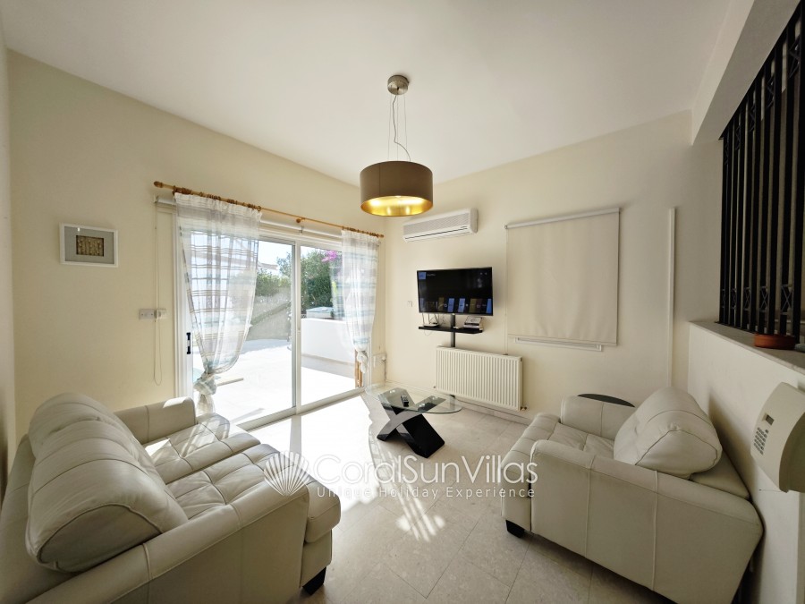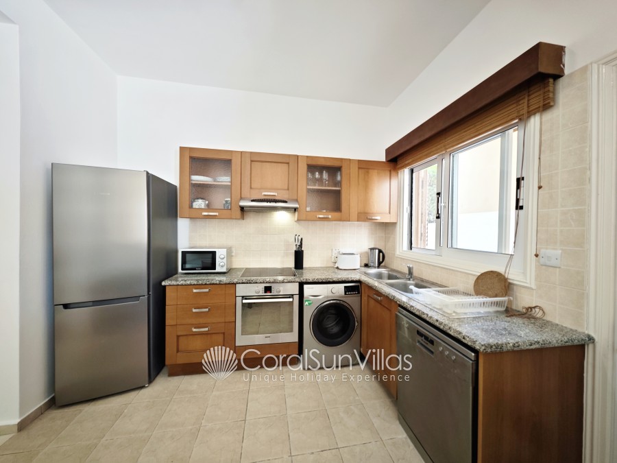 Distances: Large Supermarket 500m (Only 6-8 mins walk), Restaurant and bars (wide selection) 400m,Bank 450m (Only 7 mins walk), The Edro III Shipwreck (tourist attraction) 4.5km (7 mins drive), Sea Caves (vista point) 3.5km (5 mins drive), Pafos Zoo 7.4km (11 mins drive), Tombs of the Kings (historical landmark) 10km (14 mins drive), Peyia 4.7km (7 mins drive), Paphos 11.7km (15 mins drive), Paphos International Airport 25 km (30 mins drive).