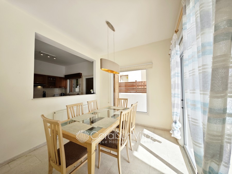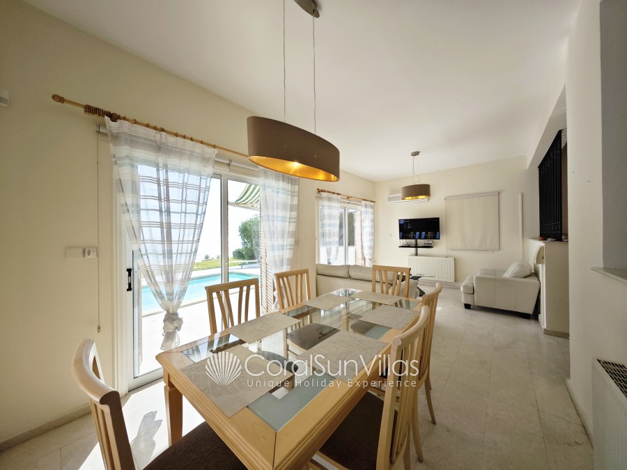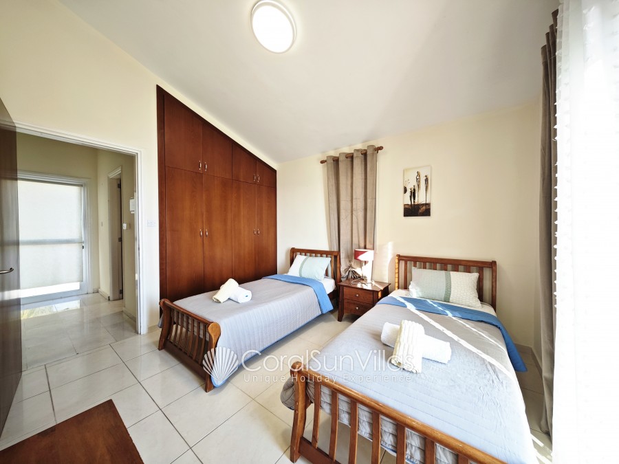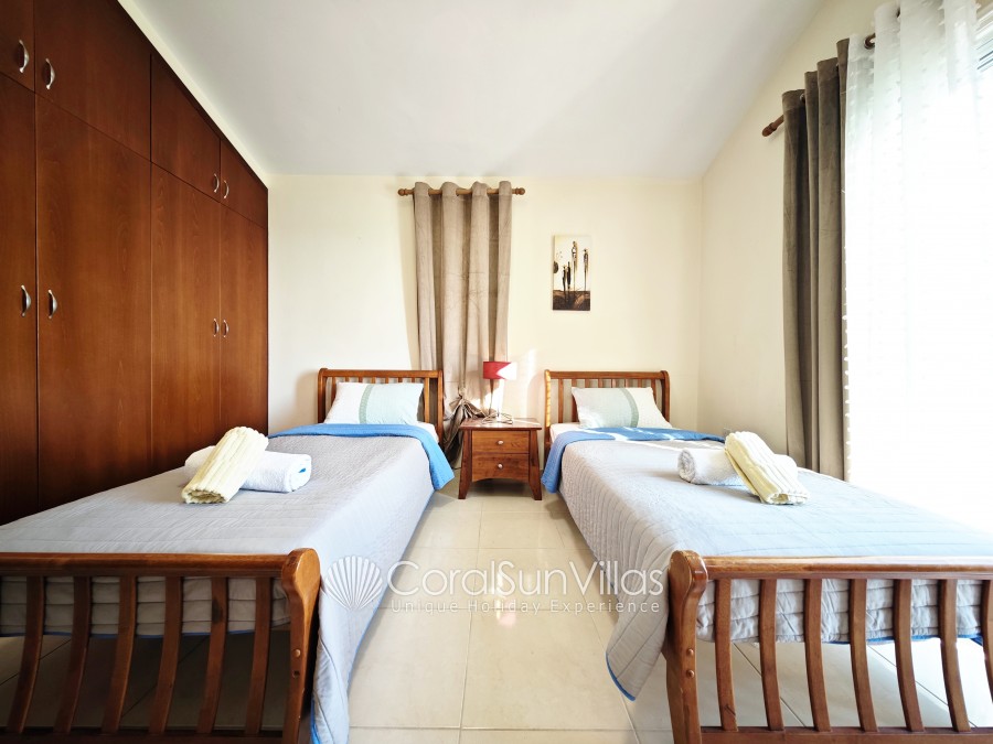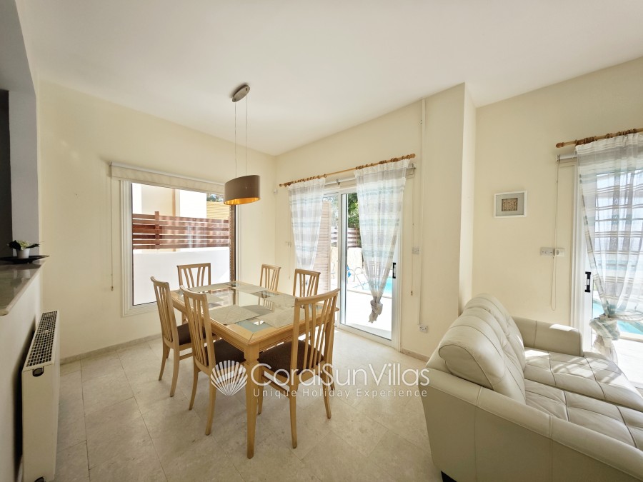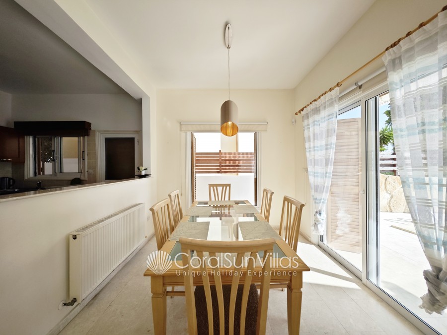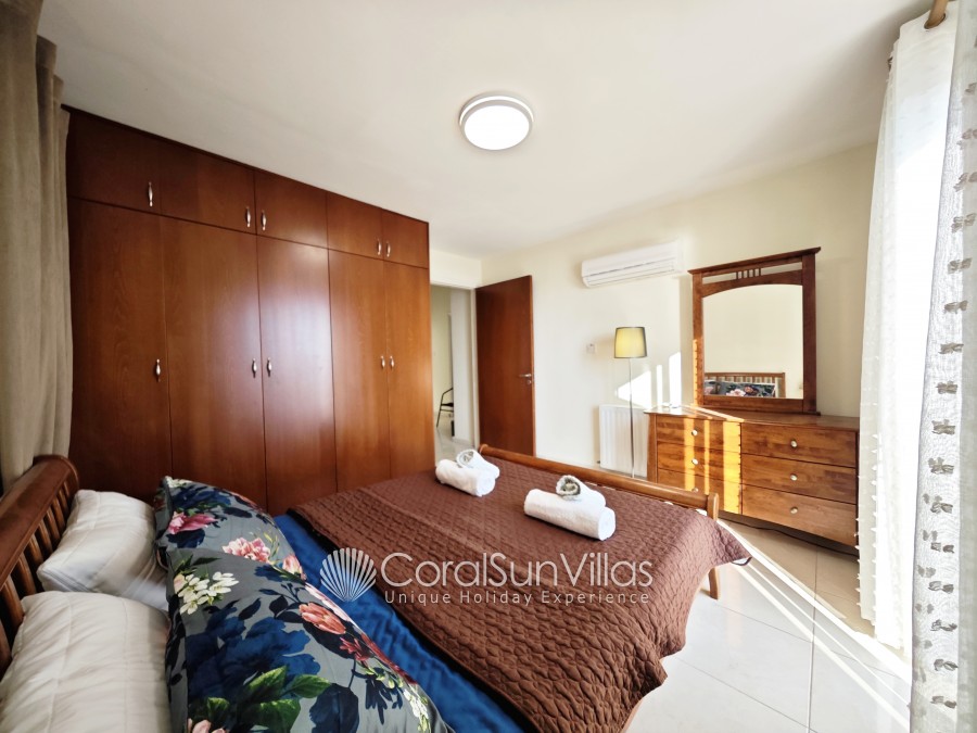 This villa with private pool is located face to the Coral bay Sea and in short walk (2-3 min) to the main Coral Bay strip. The detached property sleeps up to 6 plus 2 with extra beds Z beds, in 3 bedrooms, 2 bathrooms. It is situated in a superb location and a hire car is not essential.
