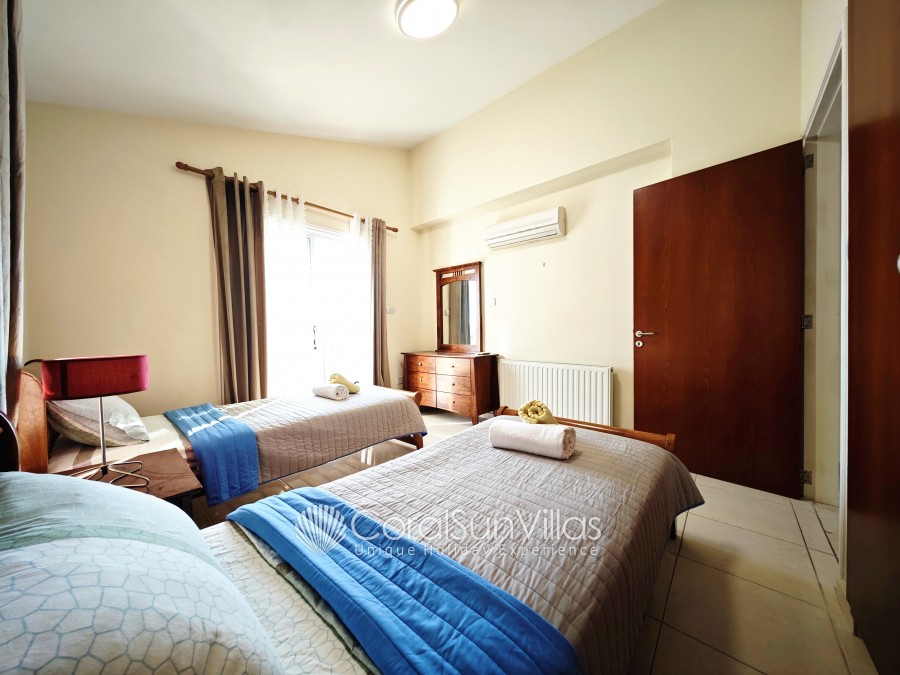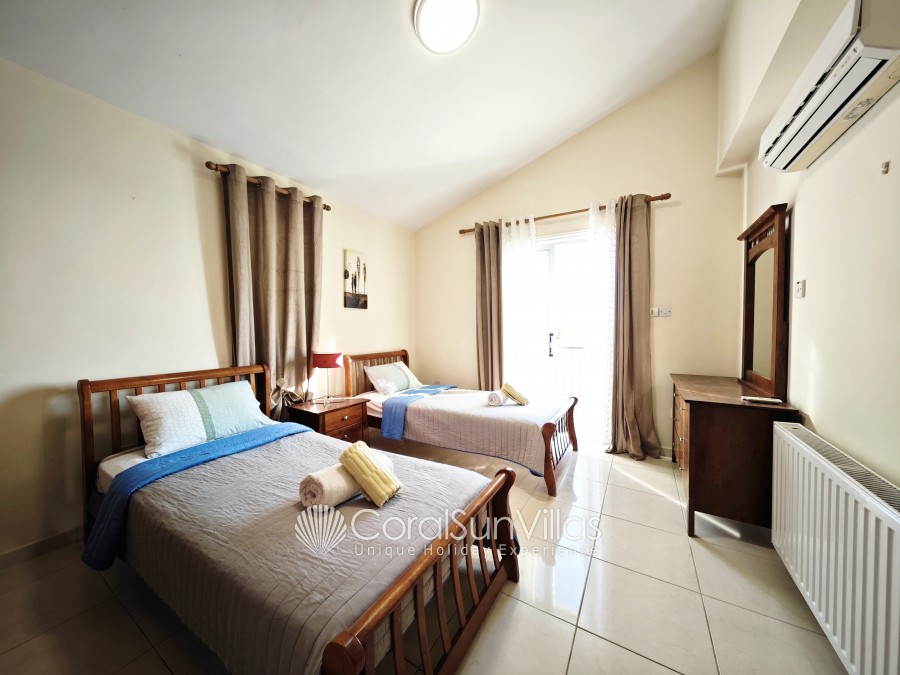 Bedroom 2 is air conditioned with Double bed, Bedroom 3 is air conditioned with 2 single beds sharing a bathroom.