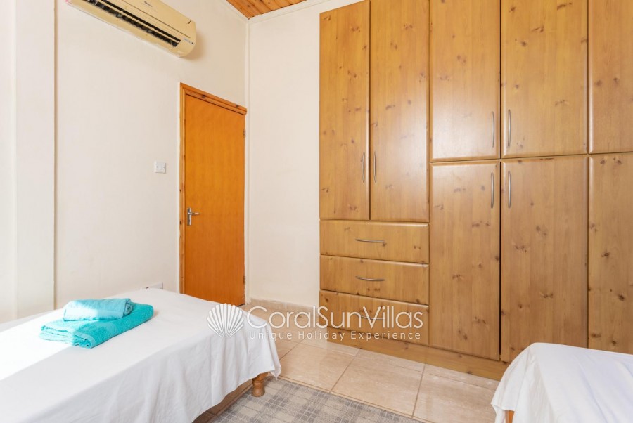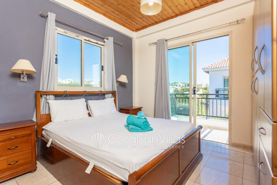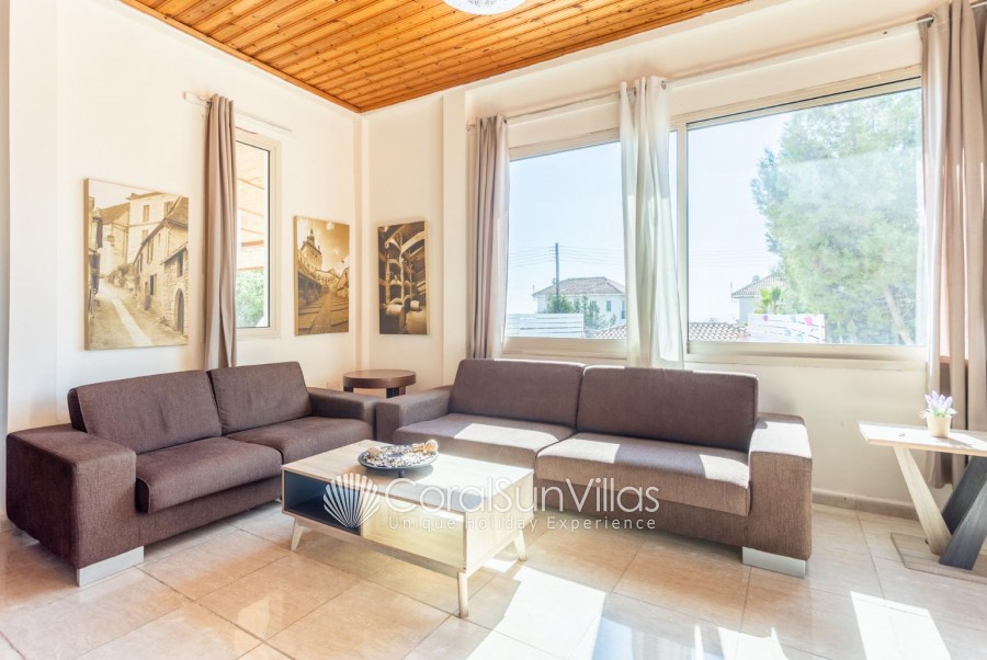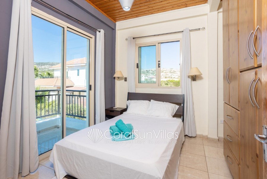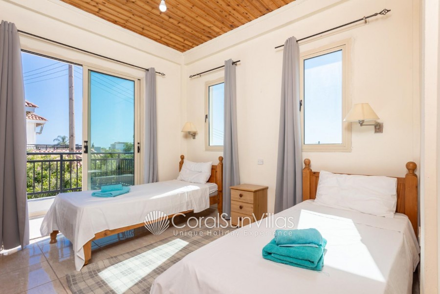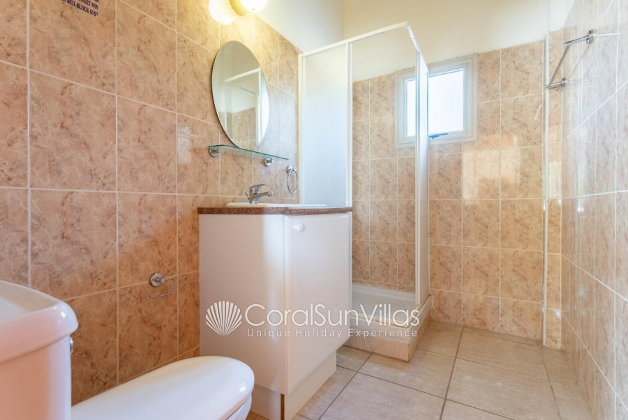 Villa is located in Coral bay Peyia. This detached vacation rental property offers air-conditioning, Free WIFI and sleeps up to 8 people with 4 Bedrooms and 5 Bathrooms. There is a private pool (South-West Facing) with barbecue and Garden sea views. Walking distance to the Restaurants.