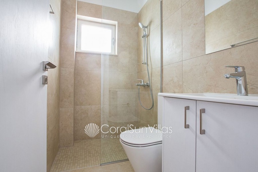 Downstairs:The villa has an open plan layout, combining living room, kitchen and dining area really makes the most of the space. For your enjoyment there is also a widescreen TV. The dining area has seating for 8 people and the modern fully fitted kitchen is equipped with all appliances, as well as a breakfast bar. The ground floor is surrounded by bi-fold patio doors which open up to the landscaped garden, BBQ and pool area outside.