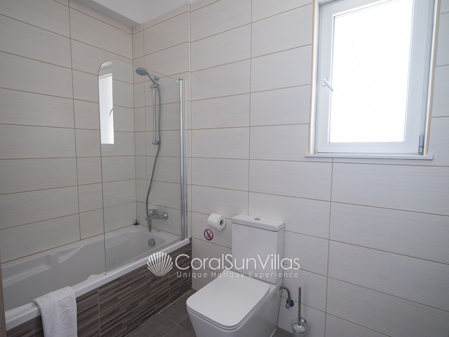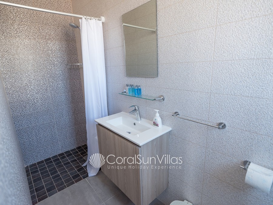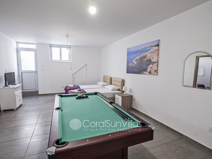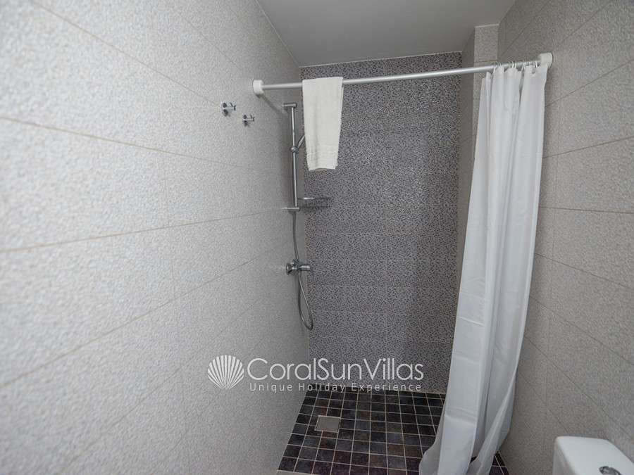 On the lower ground floor, there is the fourth bedroom which has two single beds and a large open space which has another two single beds, so the villa can accommodate 11 people using an extra bed. There is a bathroom on this floor with a shower and toilet.